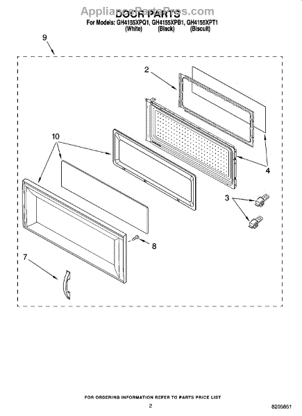 Parts for Whirlpool GH4155XPQ1: 02 - Door Parts