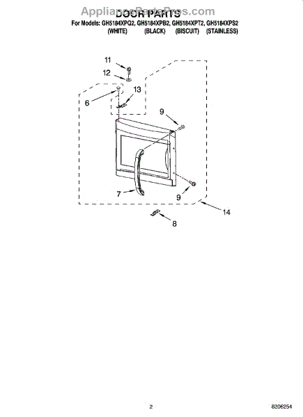Parts for Whirlpool GH5184XPS2: 02 - Door Parts
