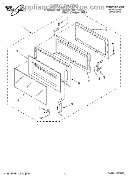 Parts for Whirlpool GH9115XEB0: 01 - Door Parts