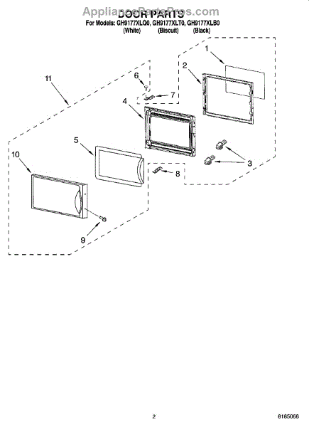 Parts for Whirlpool GH9177XLB0: 02 - Door Parts