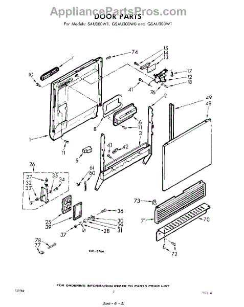 Parts for Whirlpool GSAU300W1: 02 - Door Parts