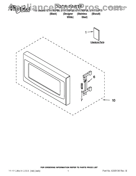 Parts for Whirlpool GT4175SPQ0: 01 - Door Parts