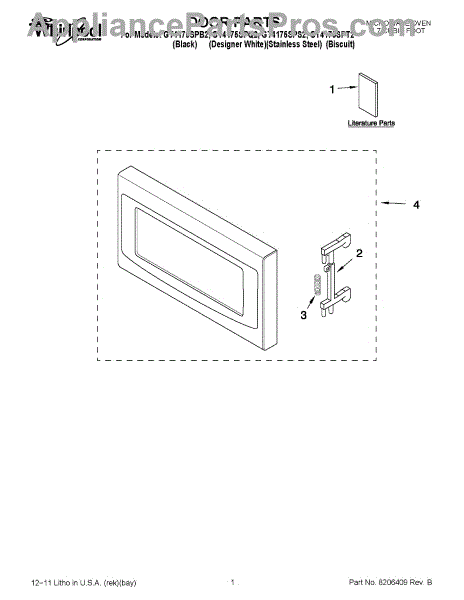 Parts for Whirlpool GT4175SPT2: 01 - Door Parts