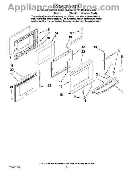 Parts for Whirlpool GW397LXUB05: 04 - Door Parts