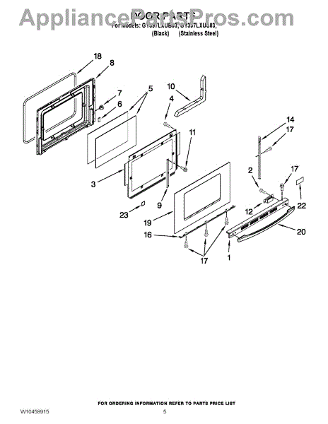 This factory screw secures appliance components to their mounting points. Replace missing, worn, or stripped hardware to restore a tight fit, proper alignment, and quieter operation across the affected assembly.