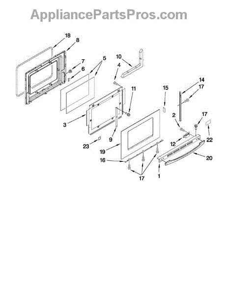 Size: 20 5/8 inches x 13 1/8 inches. For the glass measuring 22 3/8 inches x 14 inches order 74004857 Causes of a bad oven inner door glass can include small cracks or chips developing from regular door openings/closings, or microscopic defects that enlarge under repeated thermal cycling. Damage from accidental impacts is also possible. Symptoms of a bad Oven Inner Door Glass include: