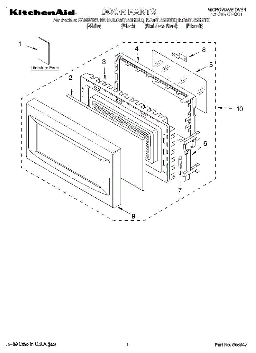 Parts for Kitchenaid KCMS135HBL0: 01 - Door, Literature Parts