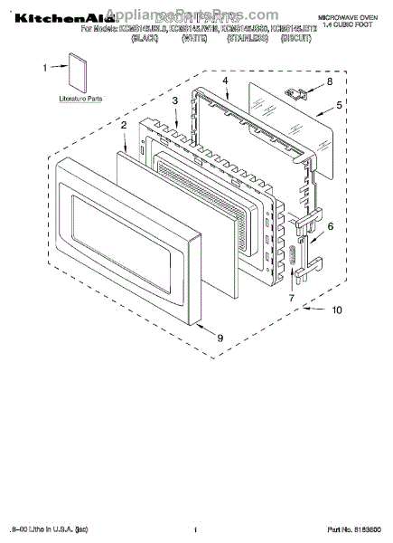 Parts for Kitchenaid KCMS145JSS0: 01 - Door, Literature Parts