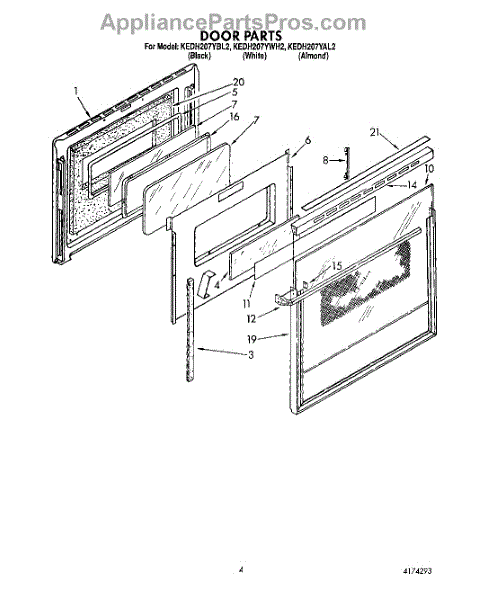 Parts for Kitchenaid KEDH207YAL2: 03 - Door, Literature Parts