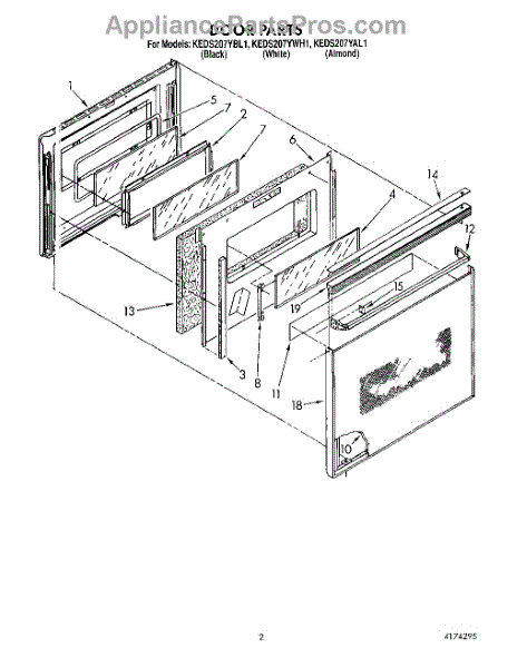 Parts for Kitchenaid KEDS207YAL1: 02 - Door Parts