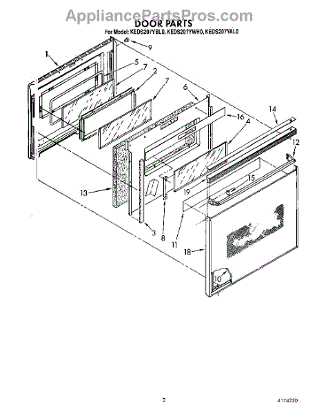 Parts for Kitchenaid KEDS207YWH0: 02 - Door Parts