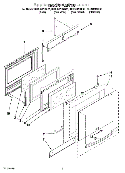 The Door Hinge is an OEM replacement part for Whirlpool wall ovens. It is located on oven doors and works to support the door for smooth opening and closing motions when removing or checking on food. Causes of a bad door hinge can include wear of internal bearing surfaces from thousands of door cycles over many years of use. Exposure to heat from inside the oven cavity may also accelerate hinge component deterioration over time. Symptoms of a bad Door Hinge include: