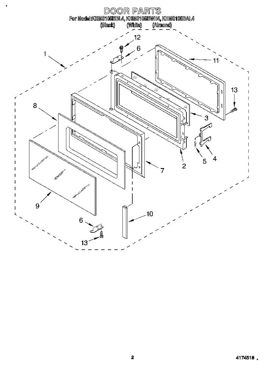 Parts for Kitchenaid KHMS105BBL4: 02 - Door Parts