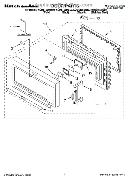 Complete door assembly. Color: Black. Other colors: For white use 8185417, for stainless steel use 8205943, for biscuit use 8185429.