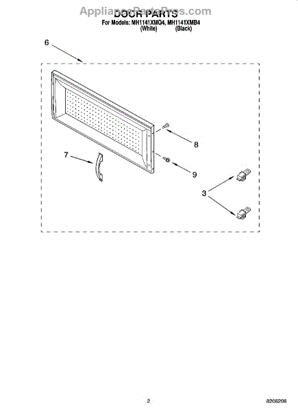 Parts for Whirlpool MH1141XMB4: 02 - Door Parts