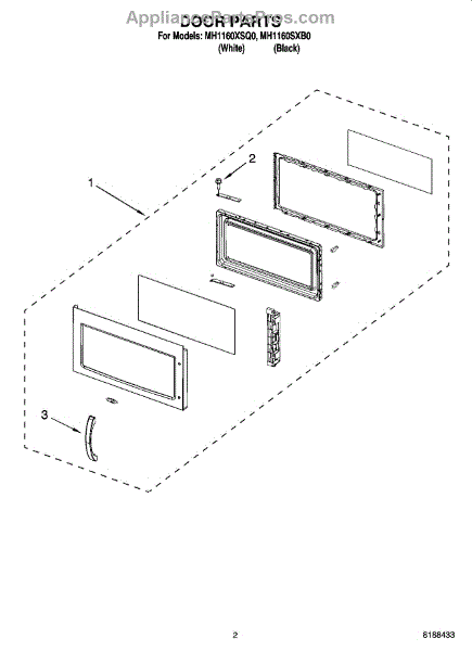 Parts for Whirlpool MH1160XSB0: 02 - Door Parts