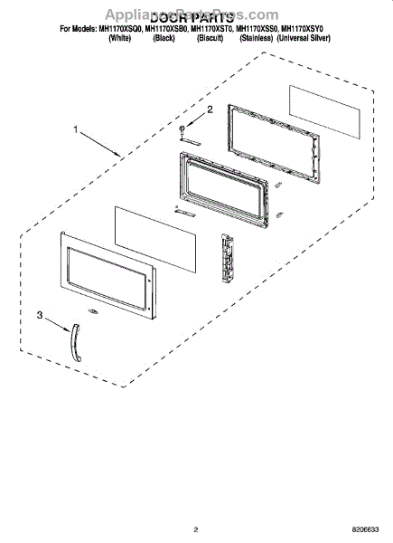 The Complete Door is an OEM part for Whirlpool microwaves. This part includes the outer door panel, inner panel, and necessary hardware, providing a complete replacement for the microwave door.