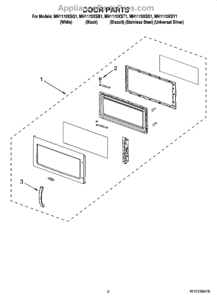 The Complete Door is an OEM part for Whirlpool microwaves. This part includes the outer door panel, inner panel, and necessary hardware, providing a complete replacement for the microwave door.
