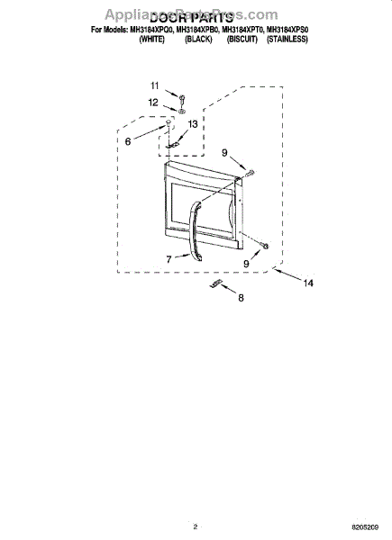 Parts for Whirlpool MH3184XPB0: 02 - Door Parts