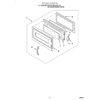 This is a complete door assembly, including door handle and latch hooks. Color: black. Front shows Whirlpool logo. This part has been discontinued and is no longer available.