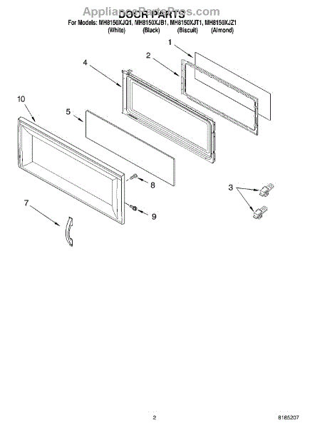 Parts for Whirlpool MH8150XJT1: 02 - Door Parts