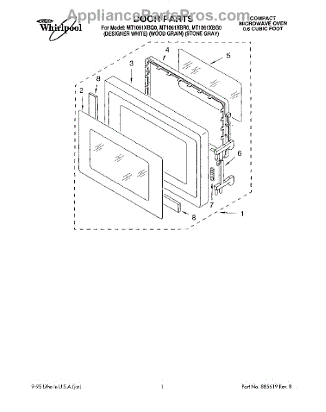 Parts for Whirlpool MT1061XBR0: 01 - Door Parts