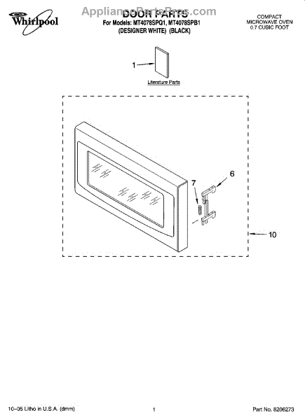 Parts for Whirlpool MT4078SPB1: 01 - Door Parts