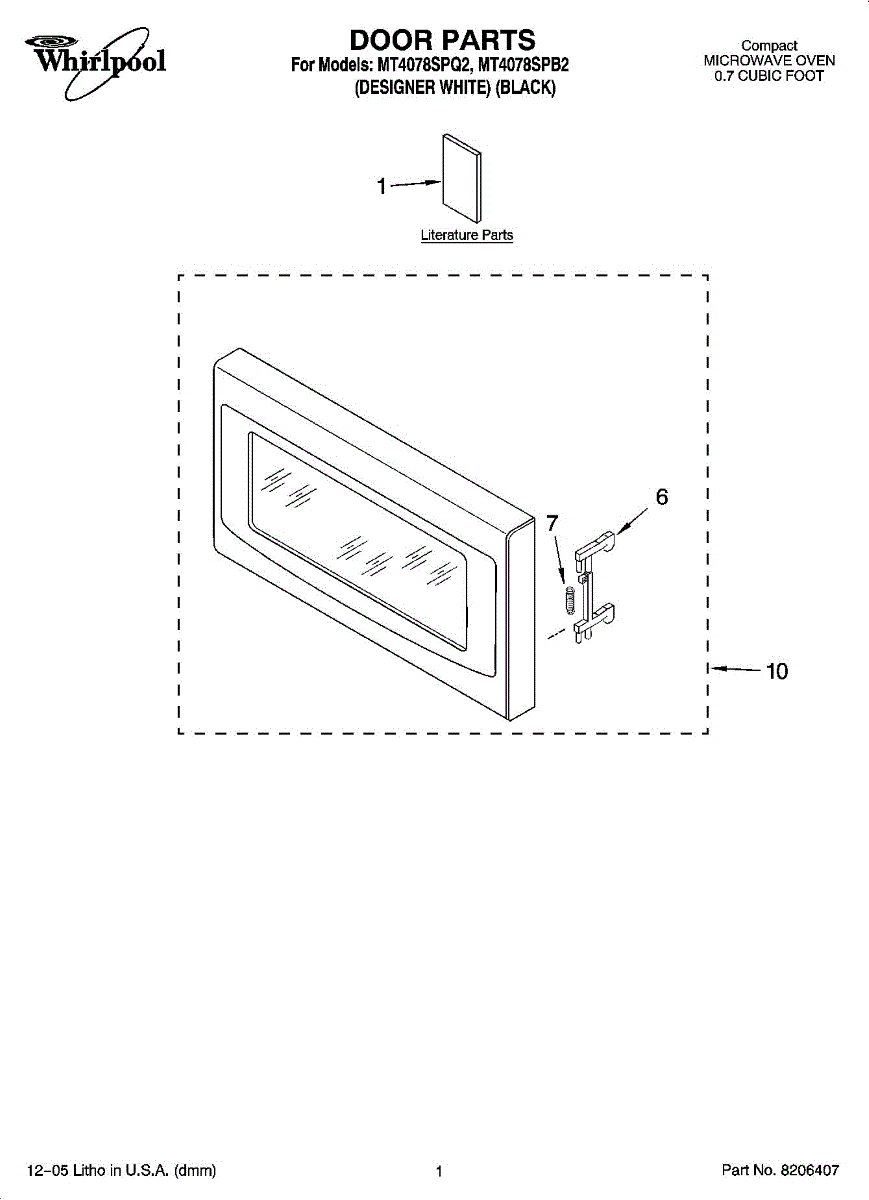 Parts for Whirlpool MT4078SPB2: 01 - Door Parts