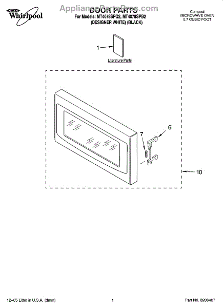 Parts for Whirlpool MT4078SPQ2: 01 - Door Parts