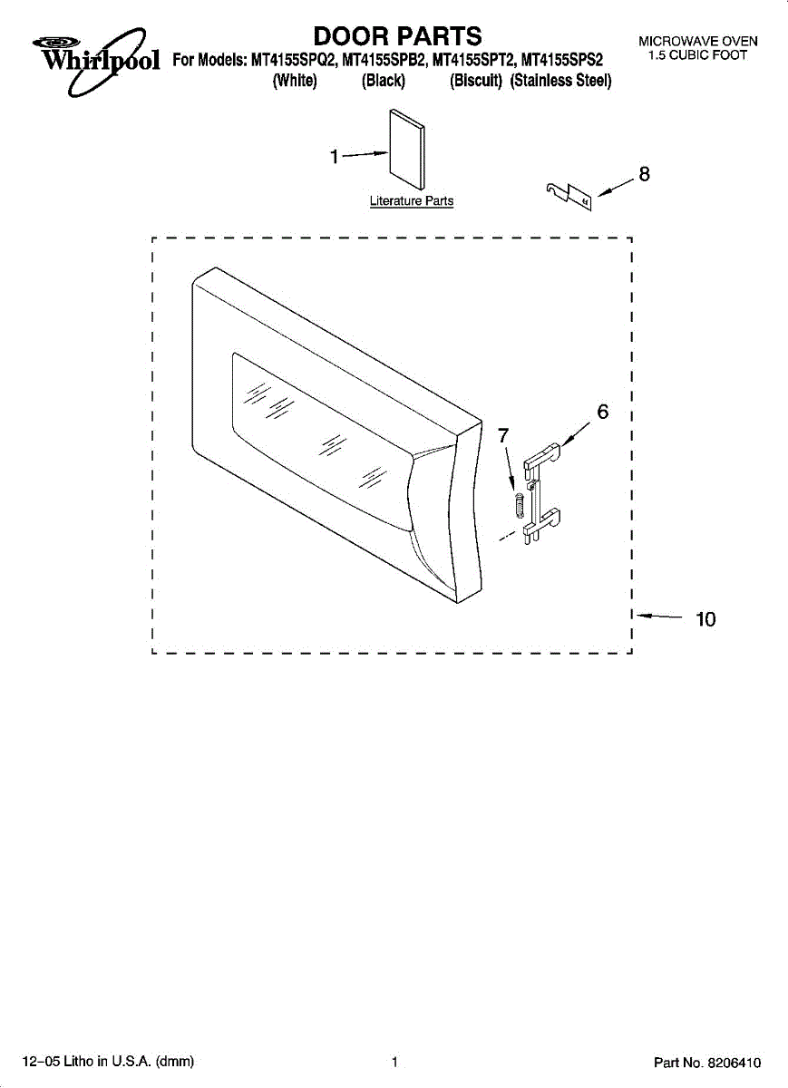 Parts for Whirlpool MT4155SPT2: 01 - Door Parts