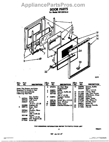 Parts for Whirlpool RB120PXK0: 06 - Door Parts