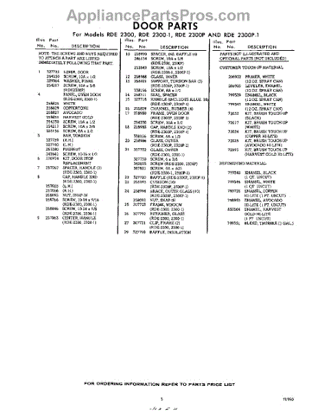 Parts for Whirlpool RDE2300W1: 05 - Door Parts