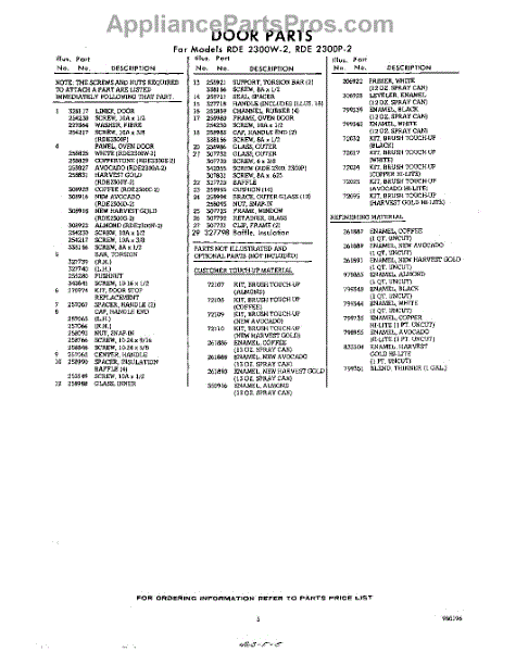 Parts for Whirlpool RDE2300W2: 05 - Door Parts