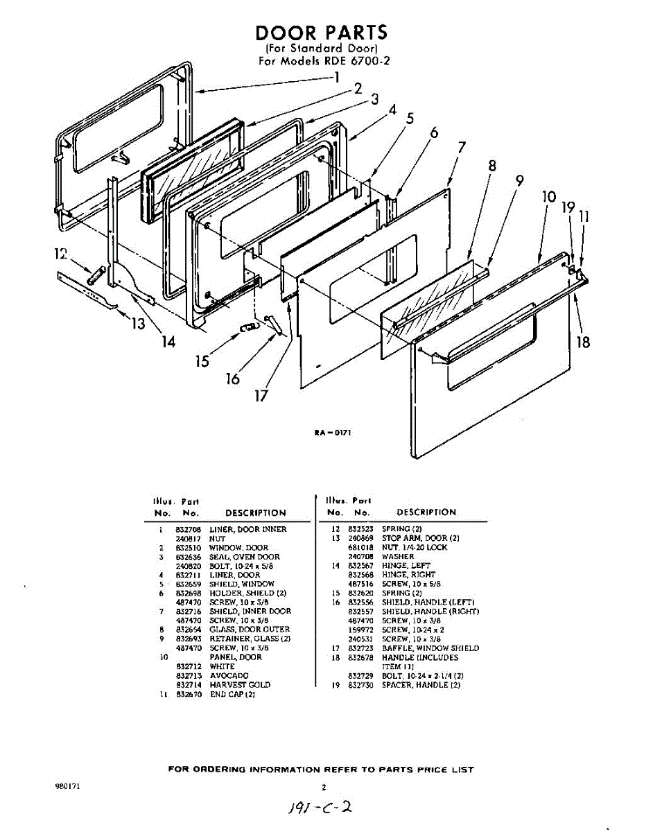 Parts for Whirlpool RDE6700W2: 02 - Door Parts