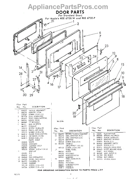 Parts for Whirlpool REE6700W: 04 - Door Parts