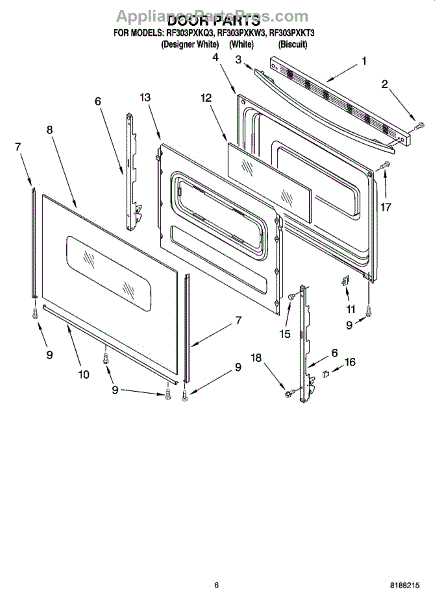 Color: Biscuit. For black glass use WP9762477. For white glass use WP9762476.