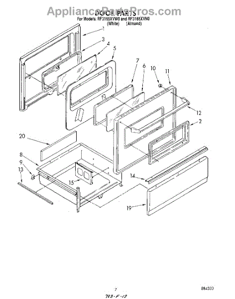 Parts for Whirlpool RF3165XVW0: 06 - Door Parts