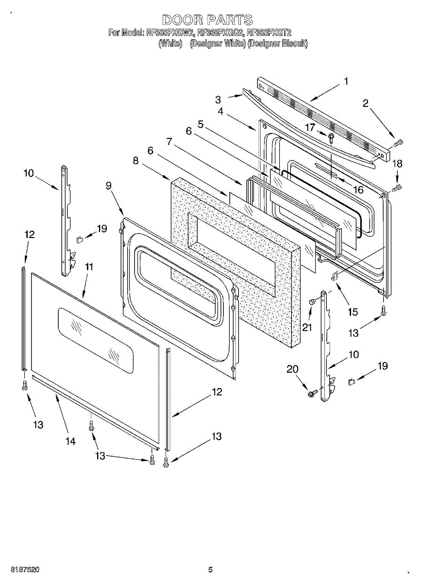 Color: Biscuit. For black glass use WP9762477. For white glass use WP9762476.