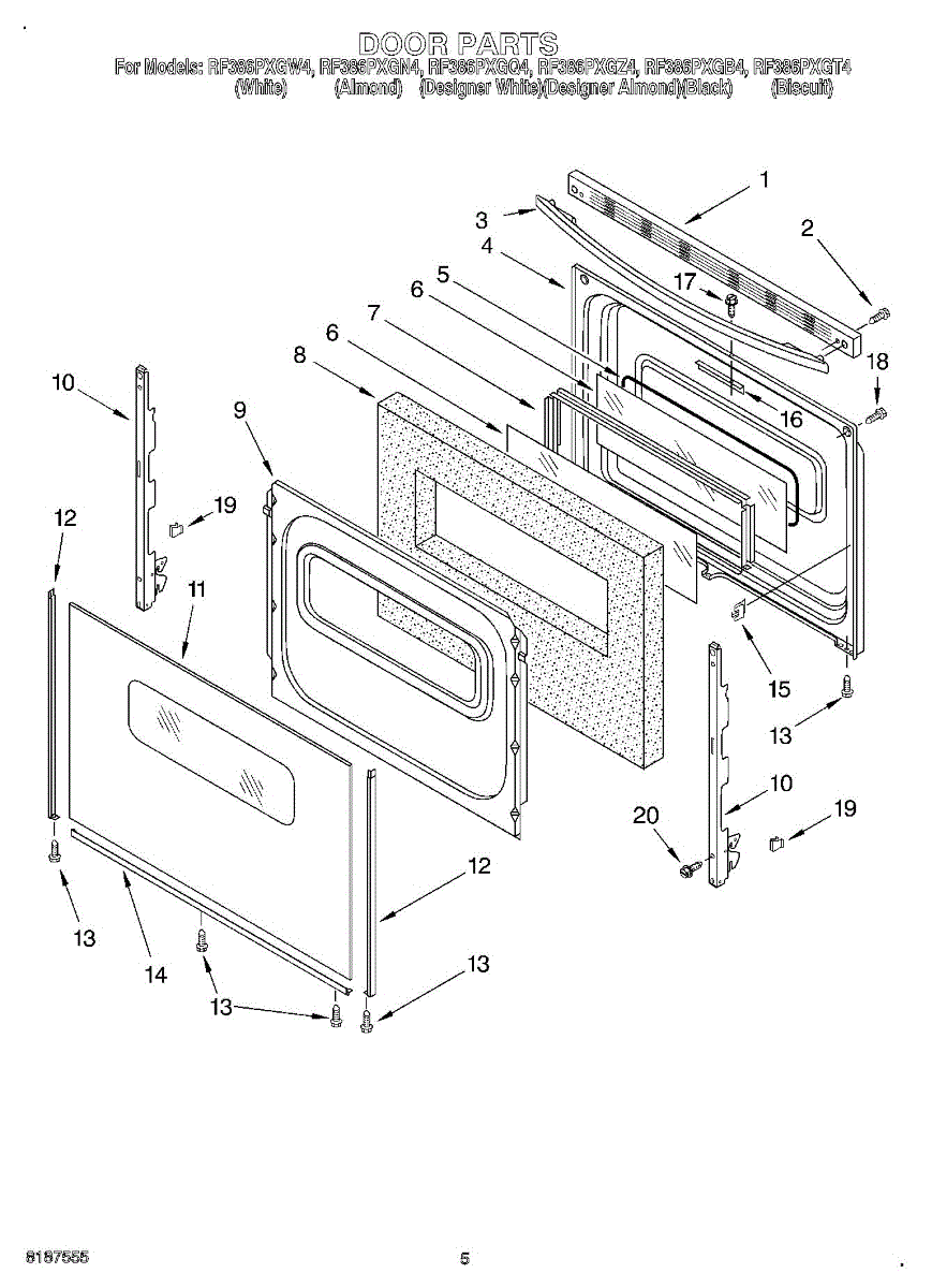 Color: Biscuit. For black glass use WP9762477. For white glass use WP9762476.