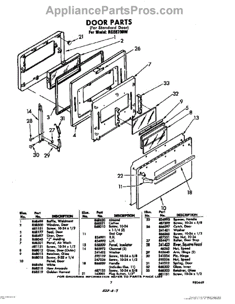 Parts for Whirlpool RGE6700PW: 07 - Door Parts