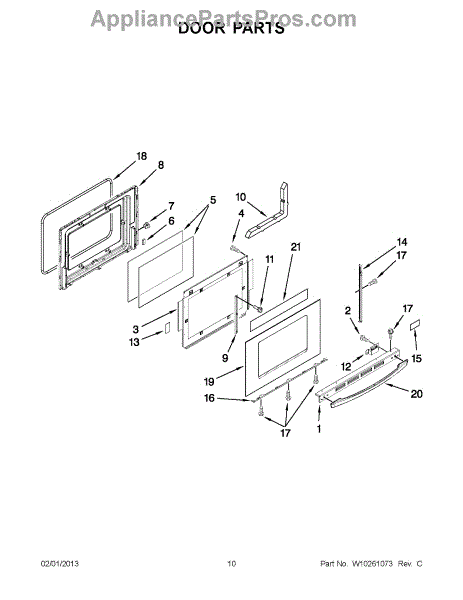 The Oven Door Panel Screw is an OEM replacement part for Whirlpool ovens and ranges. It is a component used to fasten the outer panel to the interior metal door frame. Causes of a bad oven door panel screw can include normal wear from repeated opening and closing of the door, damage such as stripped threads from overtightening, or corrosion over time inhibiting its fastening function. Symptoms of a bad oven door panel screw include:
