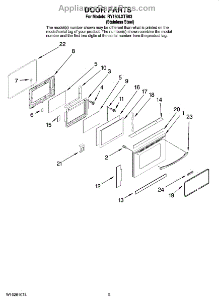Parts for Whirlpool RY160LXTS03: 04 - Door Parts