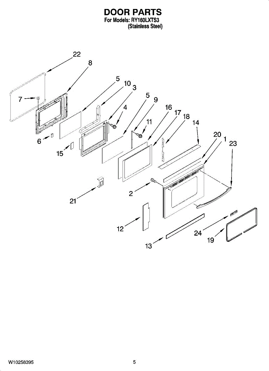 Seals oven door glass to contain heat and prevent steam or smoke from escaping. Replace when dried out, cracked, or no longer sealing properly. Confirm fit by model number.