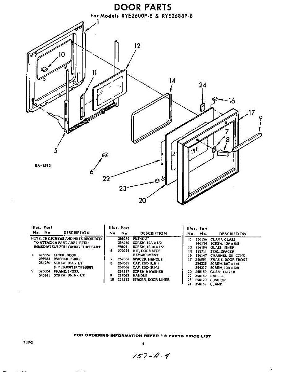 Parts for Whirlpool RYE2600P8: 04 - Door Parts