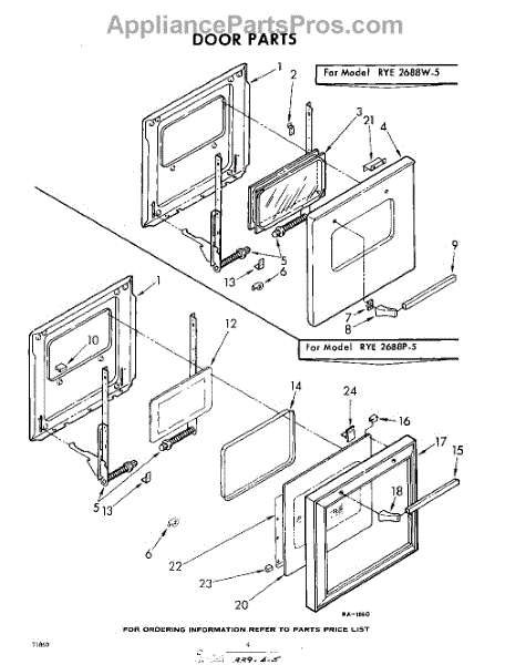 Parts for Whirlpool RYE2688W5: 04 - Door Parts