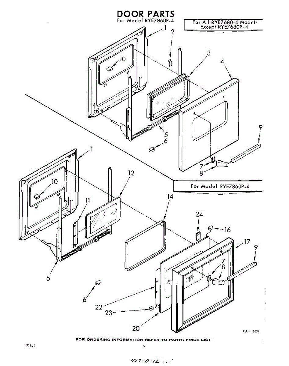 Parts for Whirlpool RYE7860P4: 04 - Door Parts