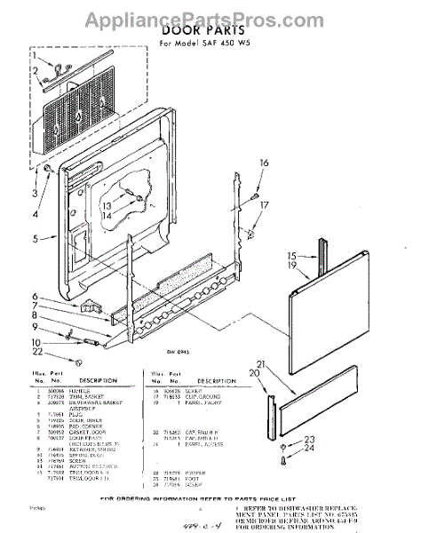 Parts for Whirlpool SAF450W5: 04 - Door Parts