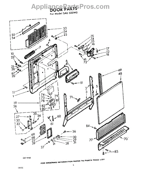 Parts for Whirlpool SAU330W0: 02 - Door Parts