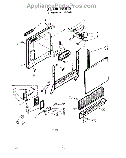 Parts for Whirlpool SAU400W0: 02 - Door Parts