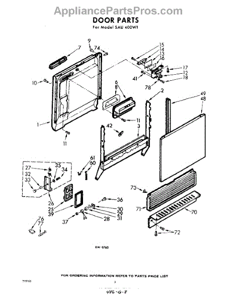 Parts for Whirlpool SAU400W1: 02 - Door Parts